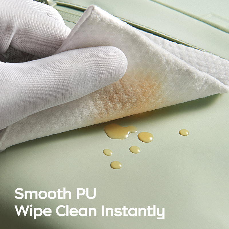 Spills wipe away instantly with one swipe, thanks to the water-resistant coating.
